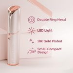 - One Finishing Touch Flawless Facial Hair Remover, White/Rose Gold stainless steel bladed hair remover for women features 18 karat gold plating and LED light for precision