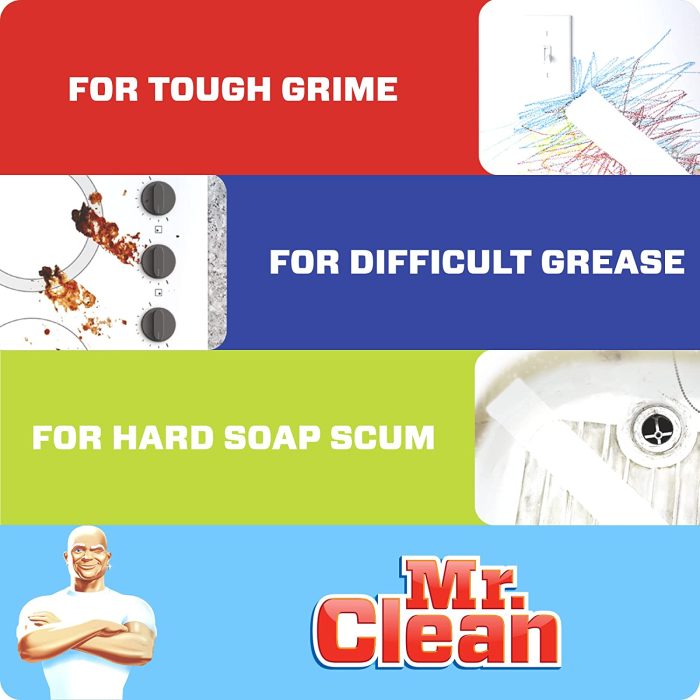 - Includes Mr. Clean Magic Eraser Extra Durable scrubber, Bath scrubber, and Kitchen scrubber